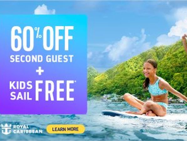 Enjoy 60% OFF the second guest and Kids Sail FREE on select sailings.